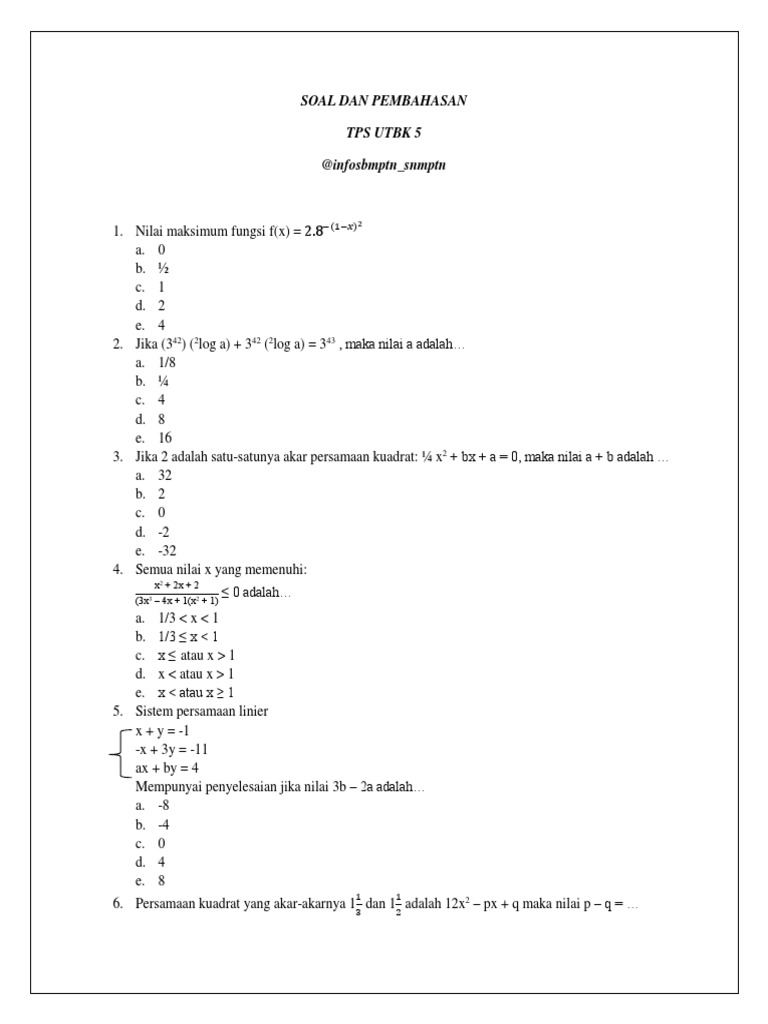 Sedangkan untuk soal utbk tka 2020/2021 soal tersebut saya ambil dari soal soshum dan soal saintek tahun sebelumnya dan pembahasannya. Kumpulan lengkap soal utbk tps 2020 beserta jawabannya. Ada juga ribuan latihan soal tps utbk di bank soal aplikasi ruangguru, lho. Materi soal tps utbk 2019/2020 rincian materi lengkap tes tps utbk 2019.2020 terdiri dari materi; Kita juga sudah menyediakan paket tambahan soal untuk tps utbk paket b1,b2,b3, dan b4 2020.